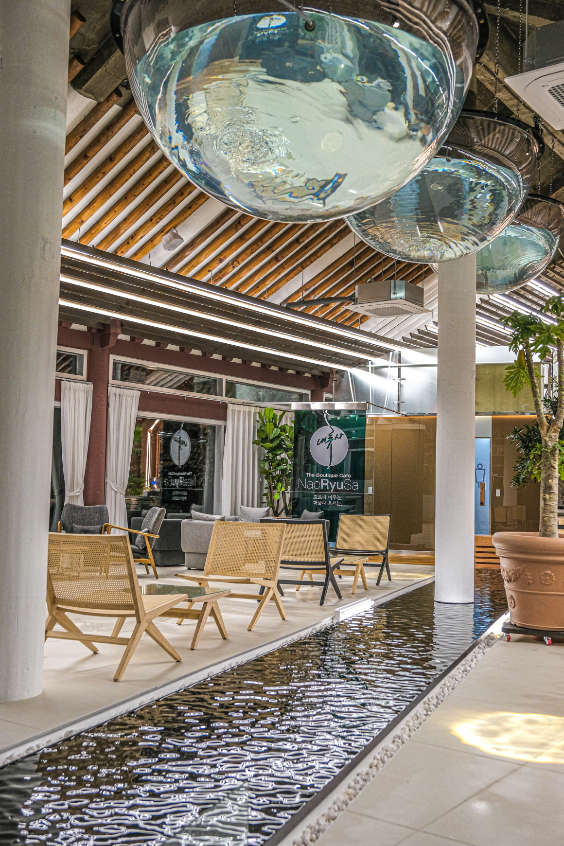 물이 흐르는 대형 한옥 베이커리 카페